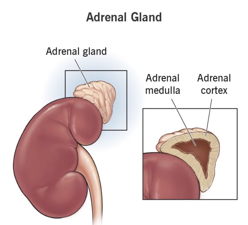 When the brain recognises something as dangerous or life threatening, it signals the activation of the sympathetic nervous system. First the hypothalamus releases corticotropin-releasing hormone (CRH), which signals the pituitary gland to release adrenocorticotropic hormone (ACTH), which in turn travels to the adrenal glands and is given the signal to secrete and release cortisone and cortisol – our ‘stress hormones’. These hormones are synthesised and derived from our cholesterol. They are secreted by the middle region of the adrenal cortex.