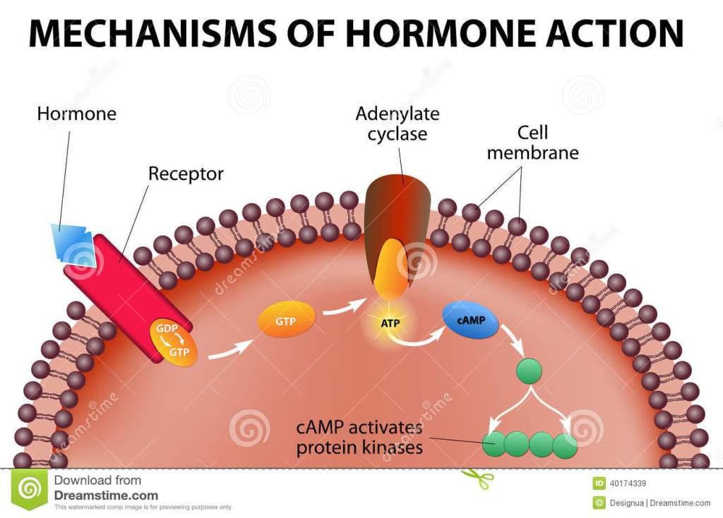 Essentially they’re chemical messengers that travel through the blood to different parts of your body. They signals the body to act in a certain way, so to speak. Hormones are recognised by their ‘target receptors’ in a “lock and key” system. These receptors are usually located in the target cells’ cell membrane, cytoplasm or nucleus. Each hormone (key) fits exactly into its receptor (lock). Only those parts of the body that have the receptor (lock) can respond to the hormone (key). This is why hormones affect some parts of the body, but have no effect on other areas,