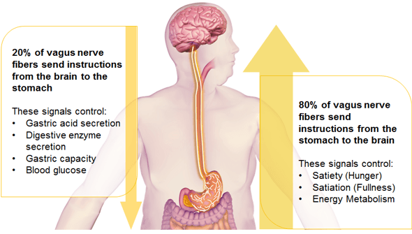 The vagus nerve has direct connections with the pancreas, which produces insulin.
