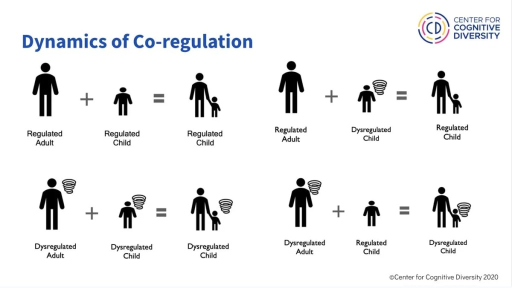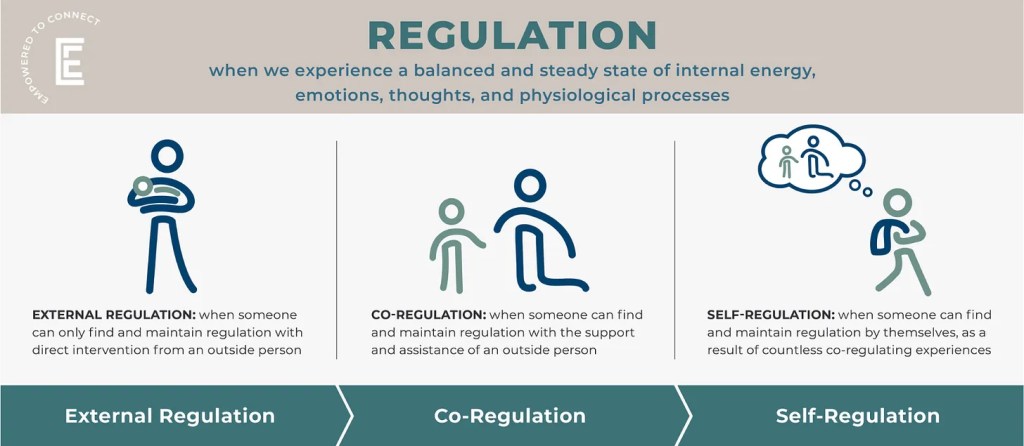 Signs that co-regulation is happening include shifts in heart rate, changes in breathing, chest tightness or heaviness, fatigue, emotional fluctuations, and even digestive or muscular tension. Spending time with people whose systems are dysregulated can pull on our energy, leaving us drained, short of breath, or emotionally reactive—even when we’re not consciously aware of it. Conversely, being with someone calm and regulated allows our nervous system to soften into safety.