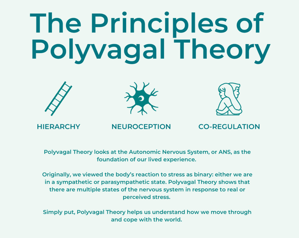 Polyvagal Theory highlights the critical role of the vagus nerve in this process. The vagus forms the backbone of the social engagement system, linking face, voice, and heart to the brainstem. In a ventral vagal state—sometimes called the “green zone”—we feel safe, connected, and able to co-regulate. When someone else is in fight-or-flight (sympathetic activation) or in freeze (dorsal vagal shutdown), the presence of a regulated other can gently invite them back towards safety through tone of voice, gaze, empathy, and resonance.