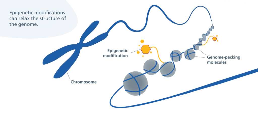 - Histone modification — proteins that package DNA can tighten (silencing) or loosen (activating) access to genes.