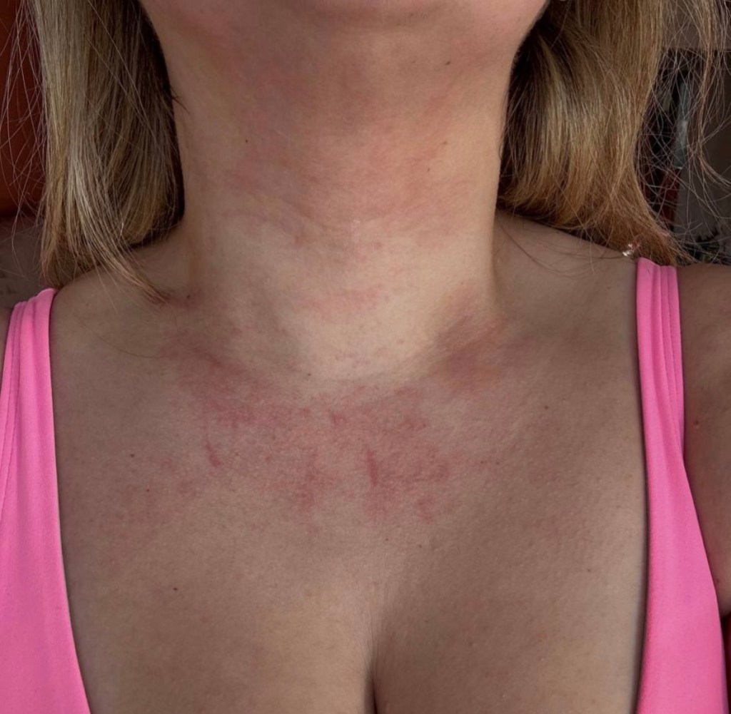 - Skin breakout e.g. spots, hives, rashes