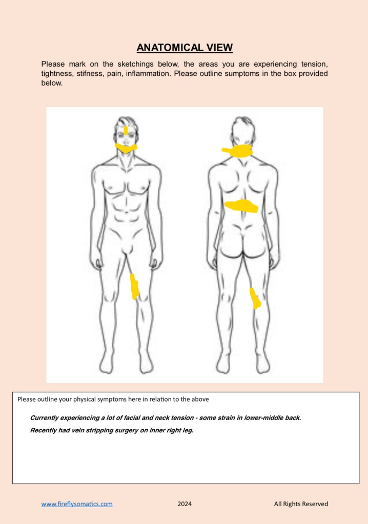 - chronic or acute muscular-skeletal tension e.g. constant fascial stiffness and muscular weakness, TMJ, osteoarthritis, issues with biomechanical patterns resulting in pain and tension